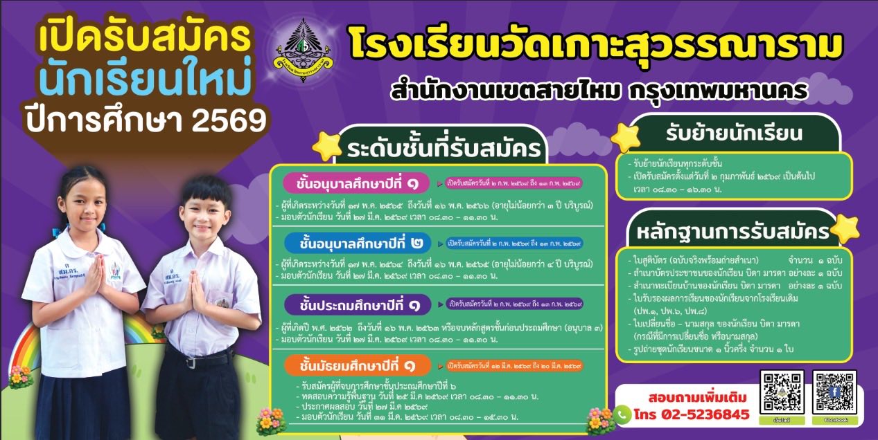 รับสมัครนักเรียนประจำปีการศึกษา 2569