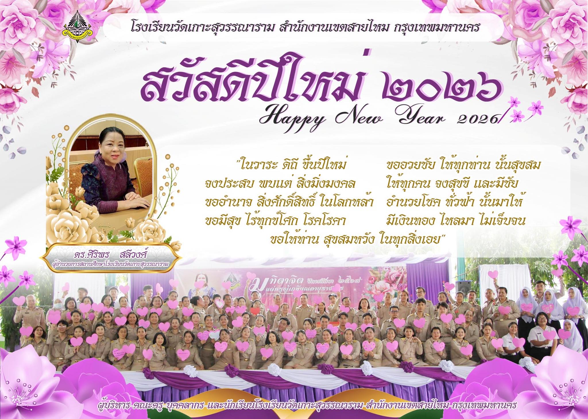 ยินดีต้อนรับ ผอ.ดร.ศิริพร สลีวงศ์ ผู้อำนวนวยการสถานศึกษา โรงเรียนวัดเกาะสุวรรณาราม